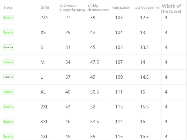 Sizes: 2XS, XS, S, M, L, XL, 2XL, 3XL, 4XL, 5XL